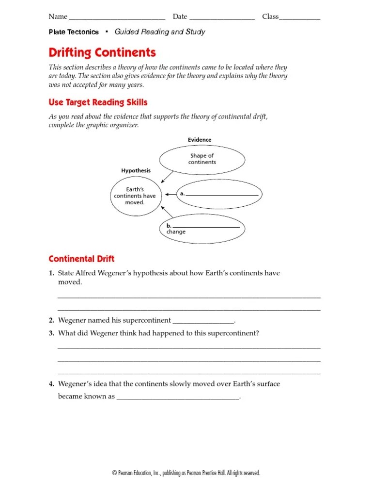 On the analyzing evidence worksheet, read the statement in each box and . Summarize the key supporting details and ideas. Answerthe following questions on a separate sheet of paper. Then write three questions that you have about continental drift in your. Why did most scientists reject wegener's theory for .